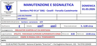 la preventiva autorizzazione scrivere al Cai sezione di Spoleto